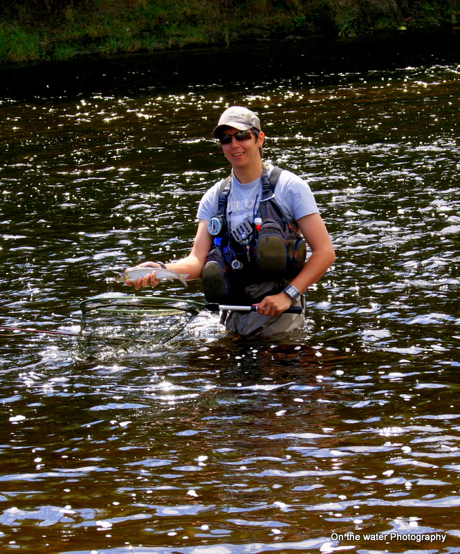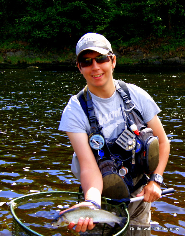 By the time I’d got there, he had already had two grayling to hand. I could see he had a pretty light fly on, so I changed bead size (heavier than what he had on, to get the ones he missed!) and drabbed down the colour and I was away. Within the first few casts I took a graying of around 8 inches and a few Salmon parr. The low water had left the slow almost still glides deplete of oxygen, it seemed the fish had pushed into the heads of the runs. Working my way steadily towards Dylan, the leader stopped and I’d hooked another grayling, this time of around a pound.
