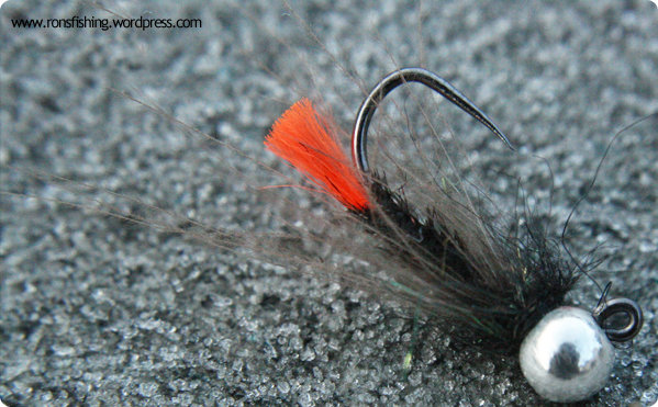 The river was a cloudy, sort of white in colour but still with fairly good visibility, it was worth a chuck anyway. My fly choice is always determined by the conditions, people have their favourites, as do I, but most of my favourites are small and light in colour, something which goes against the theory known by many anglers; ‘Dirty water, dark flies. Clear water, Clear flies’ Anyway, enough of the philosophical, My fly choice was a orange tag and a black jig. These are both dark flies which will hopefully stand out in the darker water, making their presence to the trout known.
